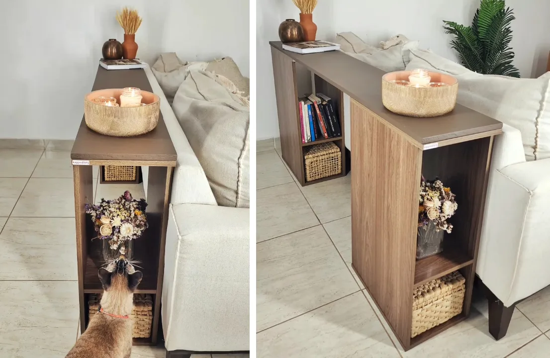• Aparador para aproveitar o espaço atrás do sofá em 3 passos