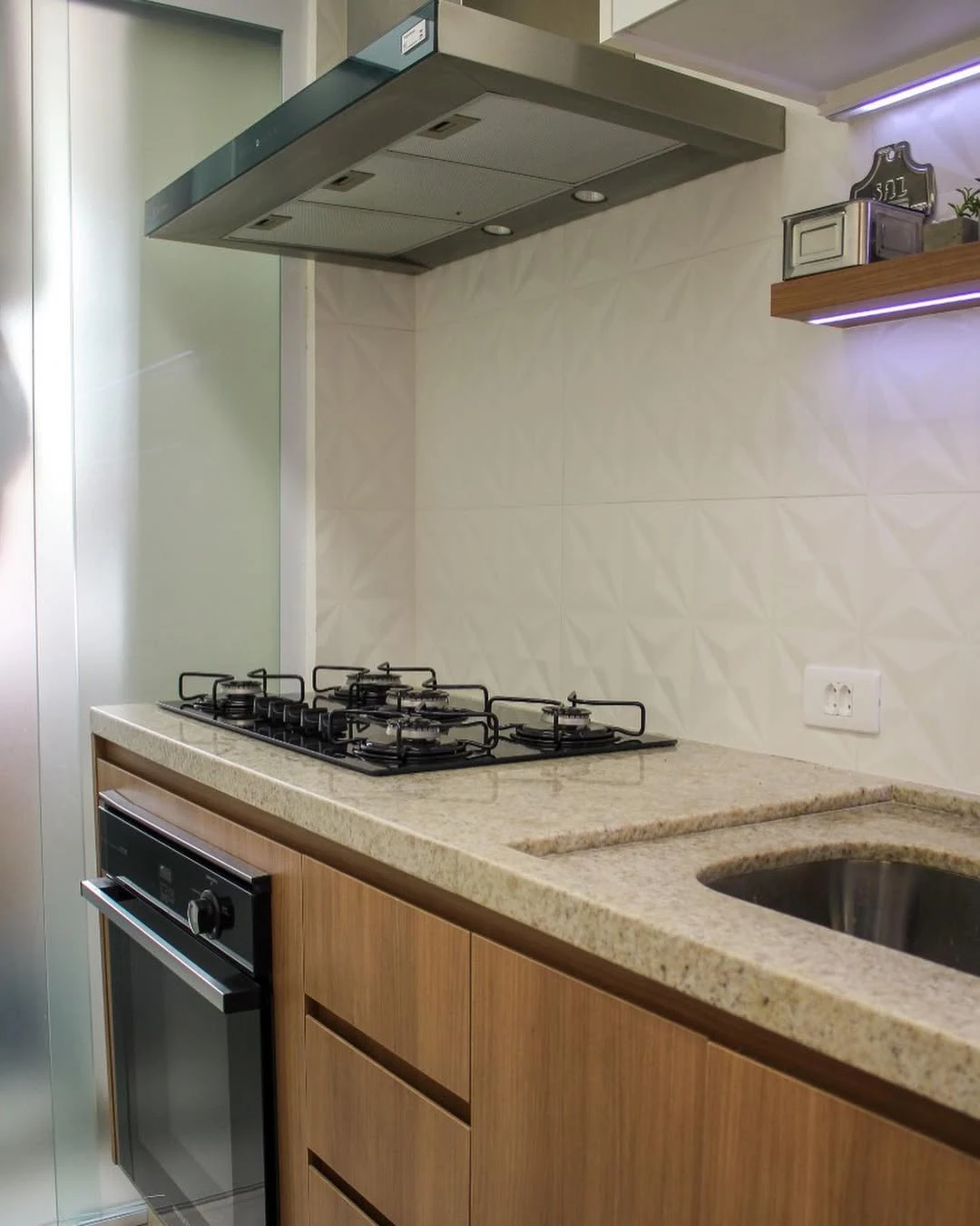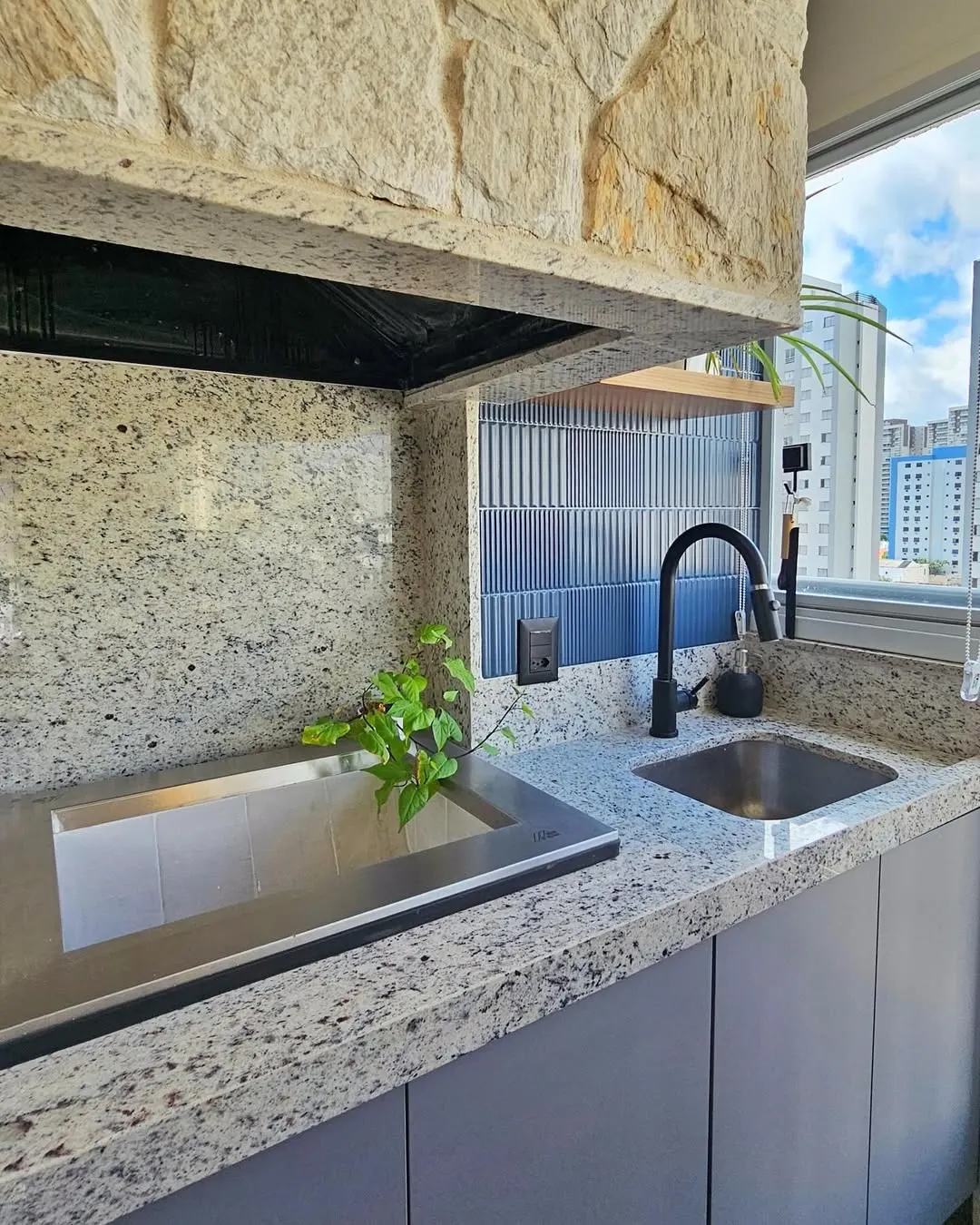 As bancadas de granito costumam ser bem fáceis de limpar e são incríveis para quem usa muito a cozinha. Esse modelo também é super prático e combina com muitos estilos!