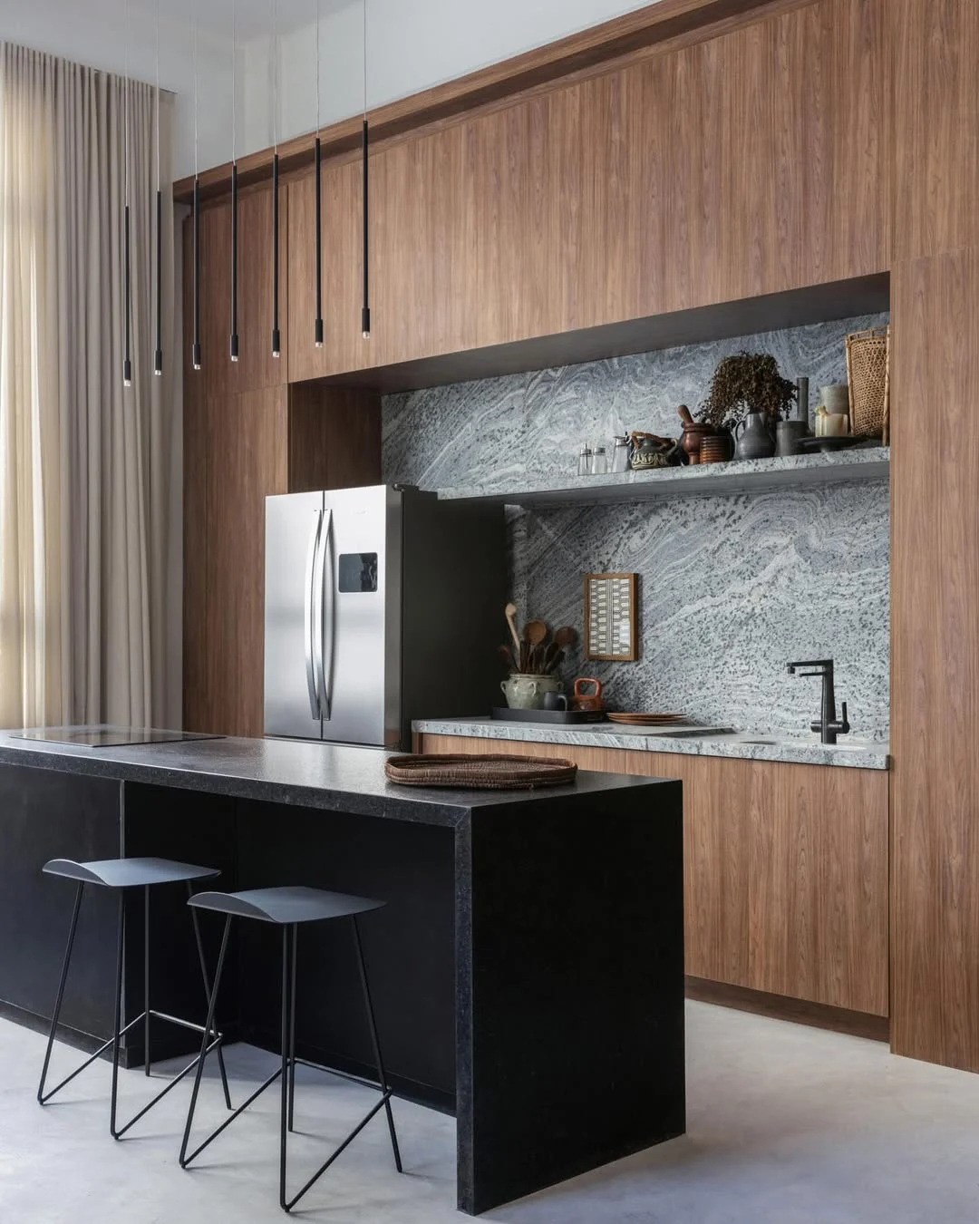 A madeira é um tipo de material que, independentemente de onde você colocar em casa, vai deixar tudo com uma cara mais aconchegante e convidativa. Nas bancadas de cozinha, dá para investir em combinações que vão do rústico ao moderno sem medo.