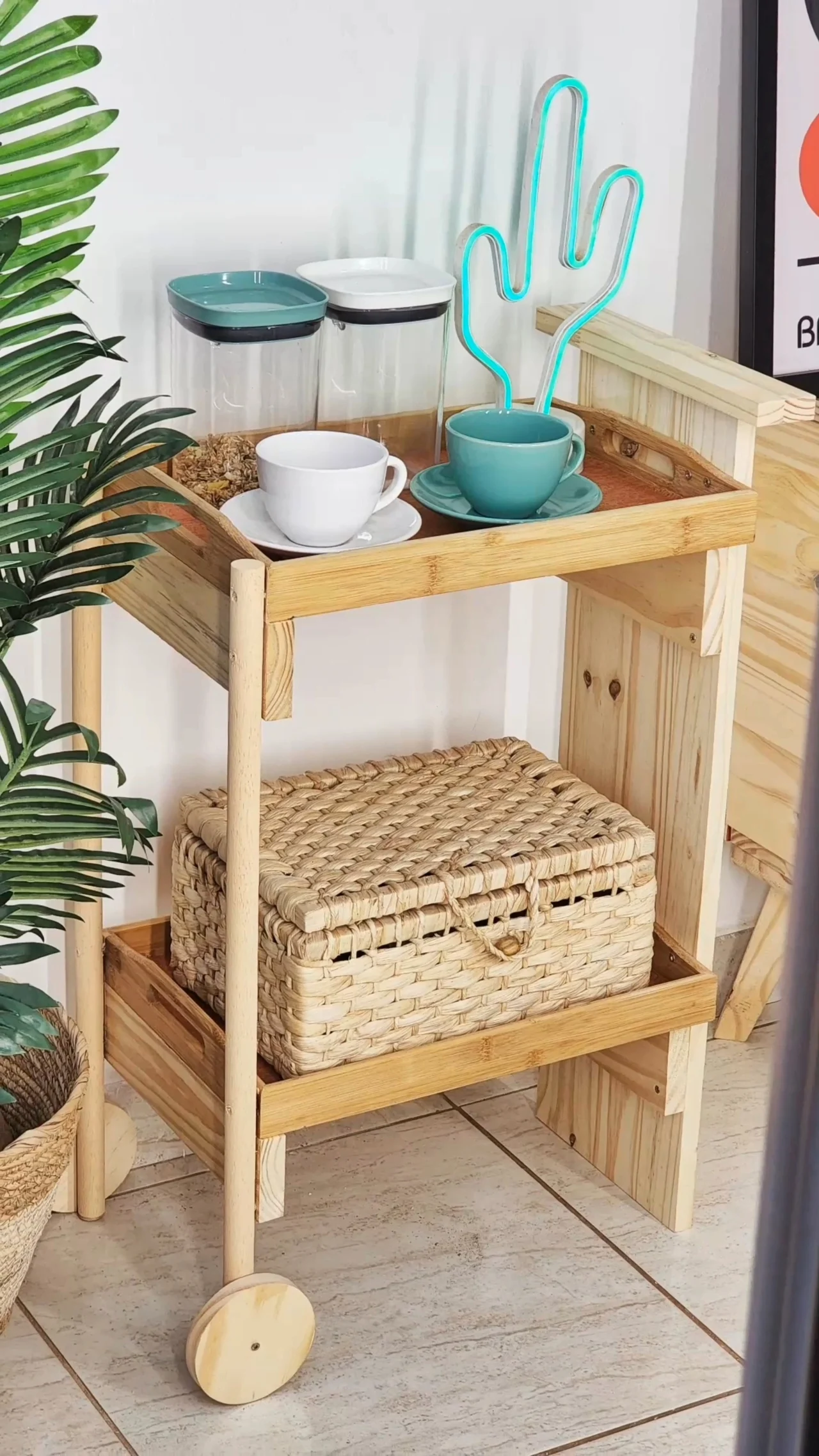 Agora, vem ver como eu fiz esse carrinho-bar com um visual bem natural e cheio de madeira!