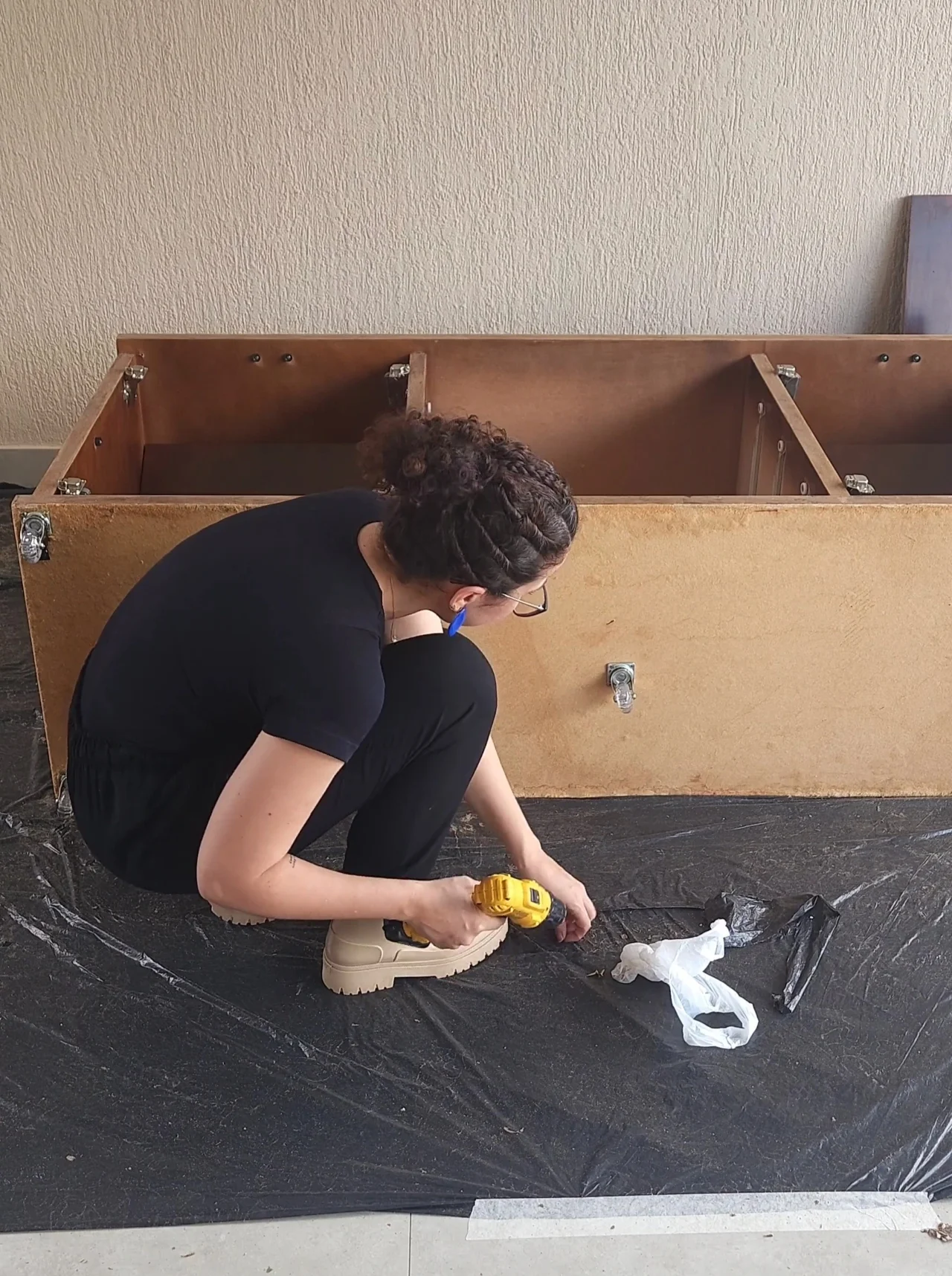 Se o seu móvel já tiver rodinhas, você pode pular essa etapa! Mas, se o seu aparador tiver apenas pés antigos, eu recomendo muito reformar esse lado dele. No caso da peça da minha prima, ela era bem pesada.