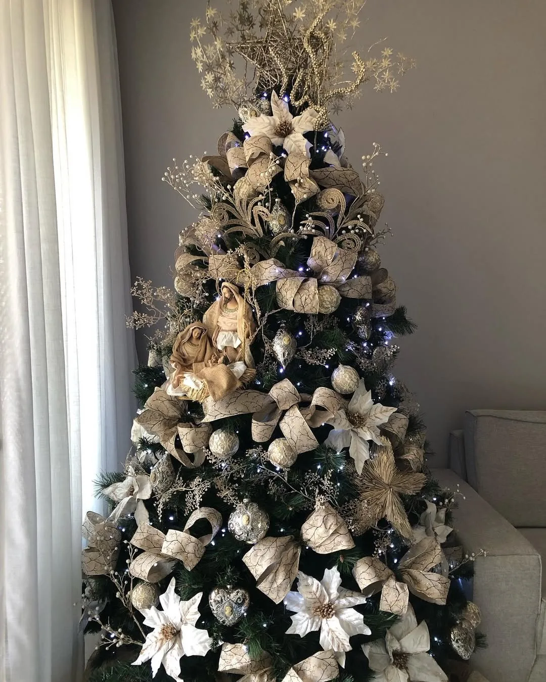 Outro ponto importante é escolher uma paleta de cores antes de começar a montar. Isso ajuda a criar harmonia visual e evita que a decoração fique sobrecarregada. Você pode apostar em combinações clássicas, como vermelho e dourado, ou ousar com tons mais modernos, como prata e azul.