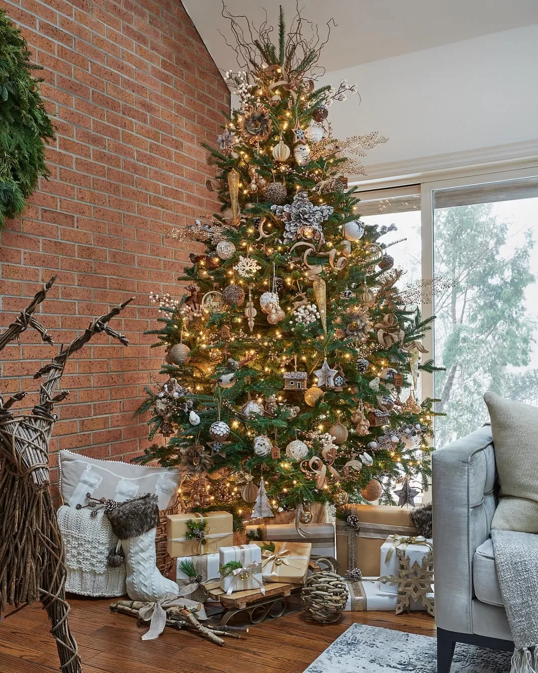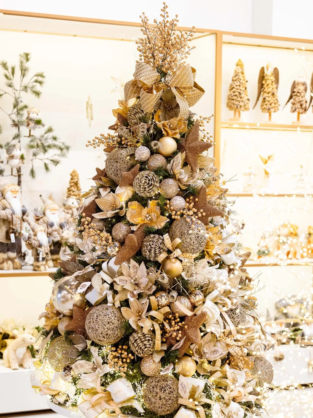 Mas, a parte que mais vemos dúvidas são: o que colocar na árvore? Aqui, é fundamental que você leve em consideração o tamanho e a espessura dela. Assim, é possível que tudo fique bem mais uniforme, evitando excessos ou lacunas. Dessa forma, também dá para definir a proporção do tamanho das bolas, galhos e estrela que vai ficar no topo.