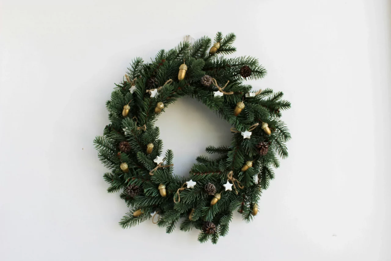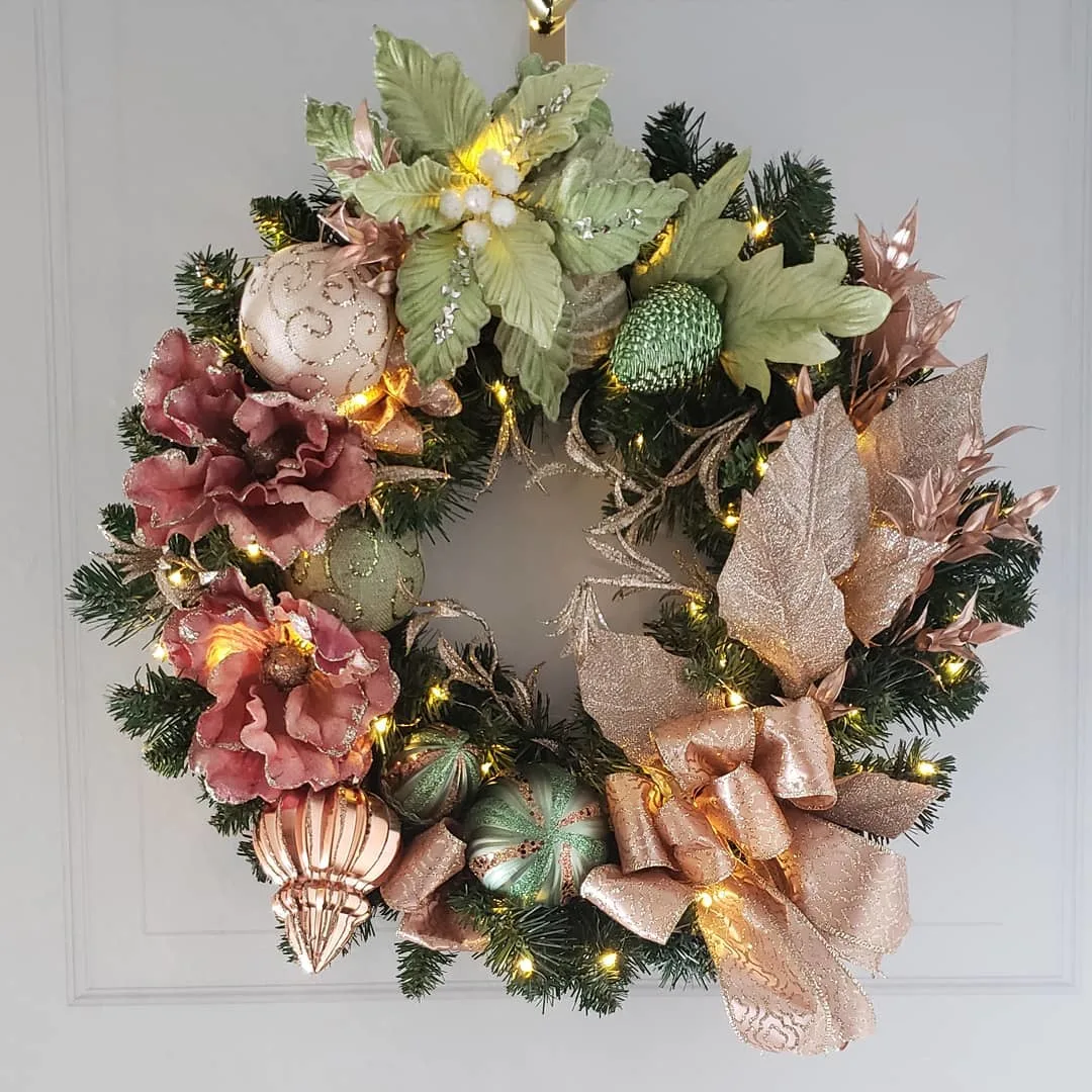 Na guirlanda, o dourado é sinônimo de sofisticação