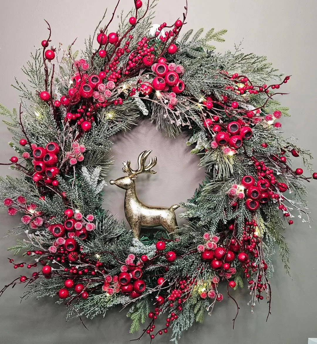 Para fechar, é algo que não tem erro e é a cara do natal: guirlandas. Você pode optar pelo modelo tradicional com ramos, bolas e laços, inovar em uma decoração DIY ou colocar uma moderna.