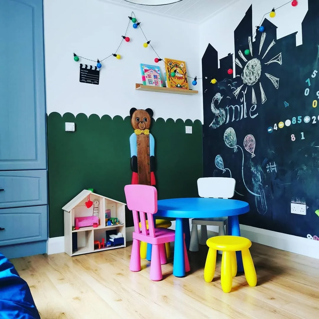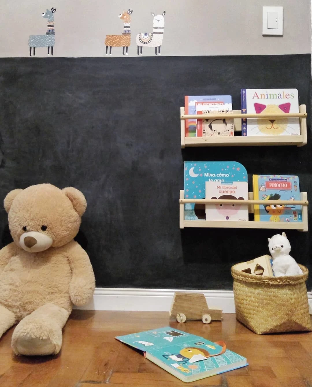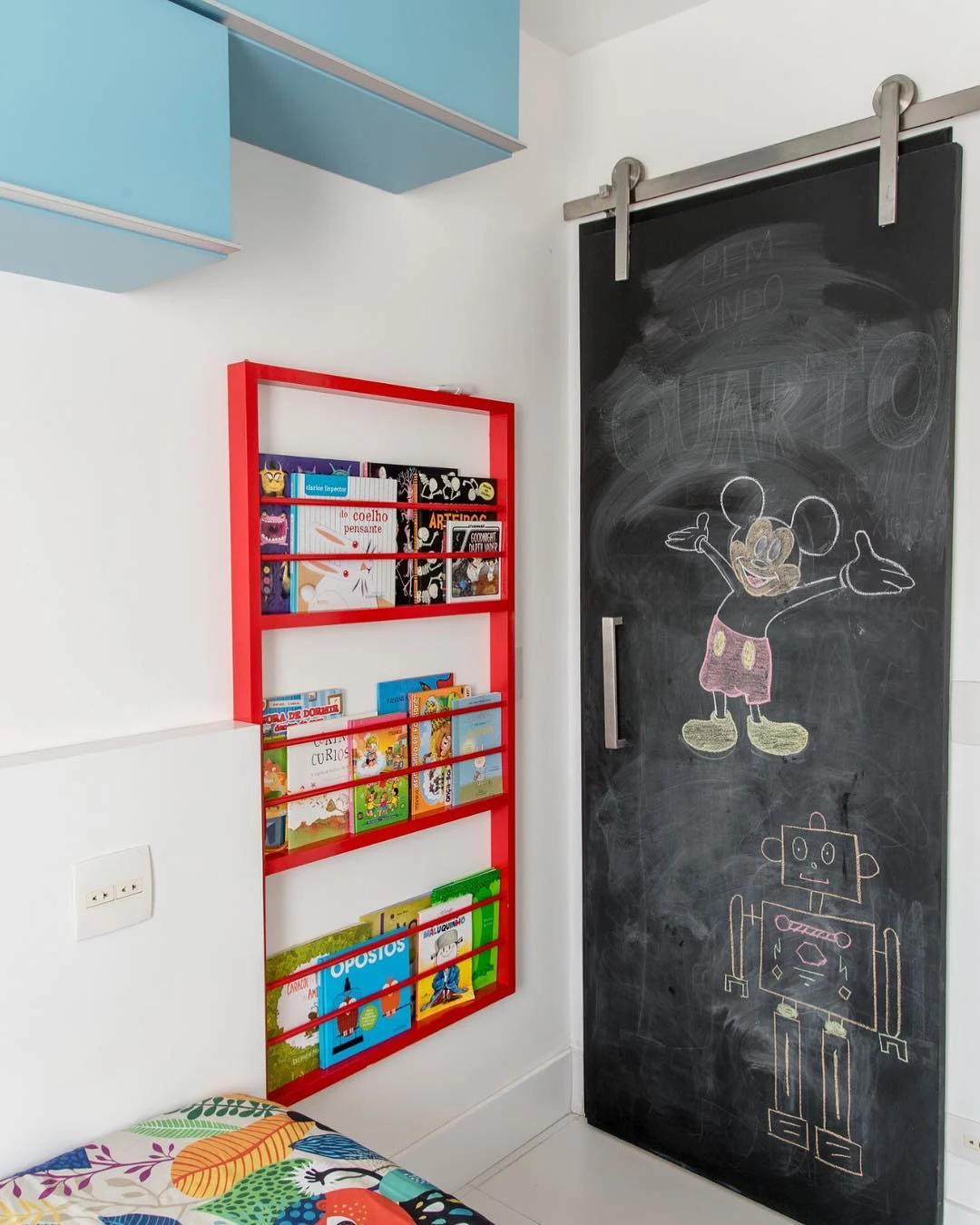 Em quartos infantis, é também um espaço bem divertido! Aqui, o seu pequeno pode soltar a criatividade e imaginação. Se você tem uma criança em casa que está naquela fase de querer rabiscar todas as paredes, essa é uma alternativa que vai deixar todo mundo feliz.
