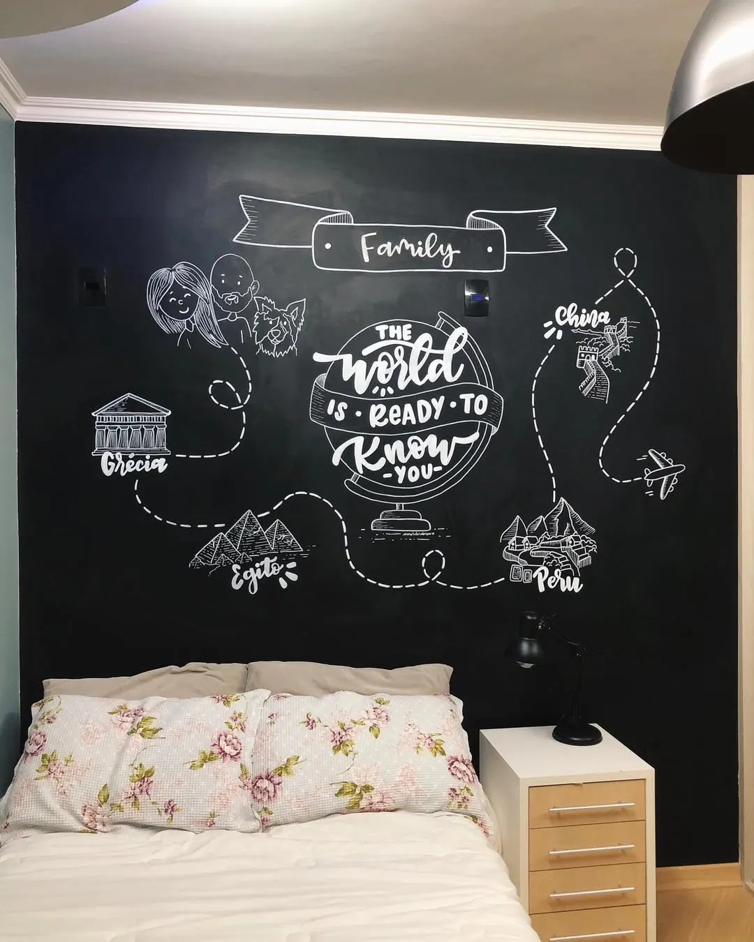 Você pode pensar na parede de quadro negro como uma grande tela em branco que, quando necessário, você pode moldar do jeito que mais se adaptar às suas necessidades cotidianas. Um excelente benefício é que, nesse caso, também é possível fazer em imóveis de aluguel, já que é um processo reversível em casa.