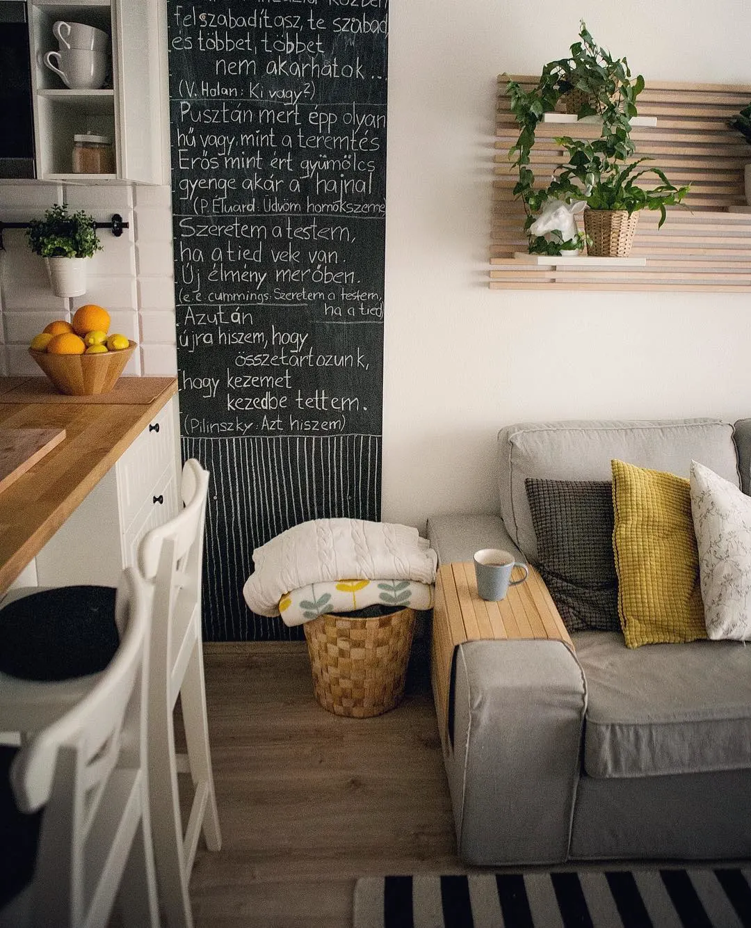 Agora que você já conhece as suas opções para instalar a sua parede de quadro negro em casa, é hora de ver como ela pode ser usada. Um dos melhores aspectos é que esse tipo de decoração é muito adaptável! Isso é, em qualquer cômodo de casa, você consegue encaixar e deixar tudo personalizado.