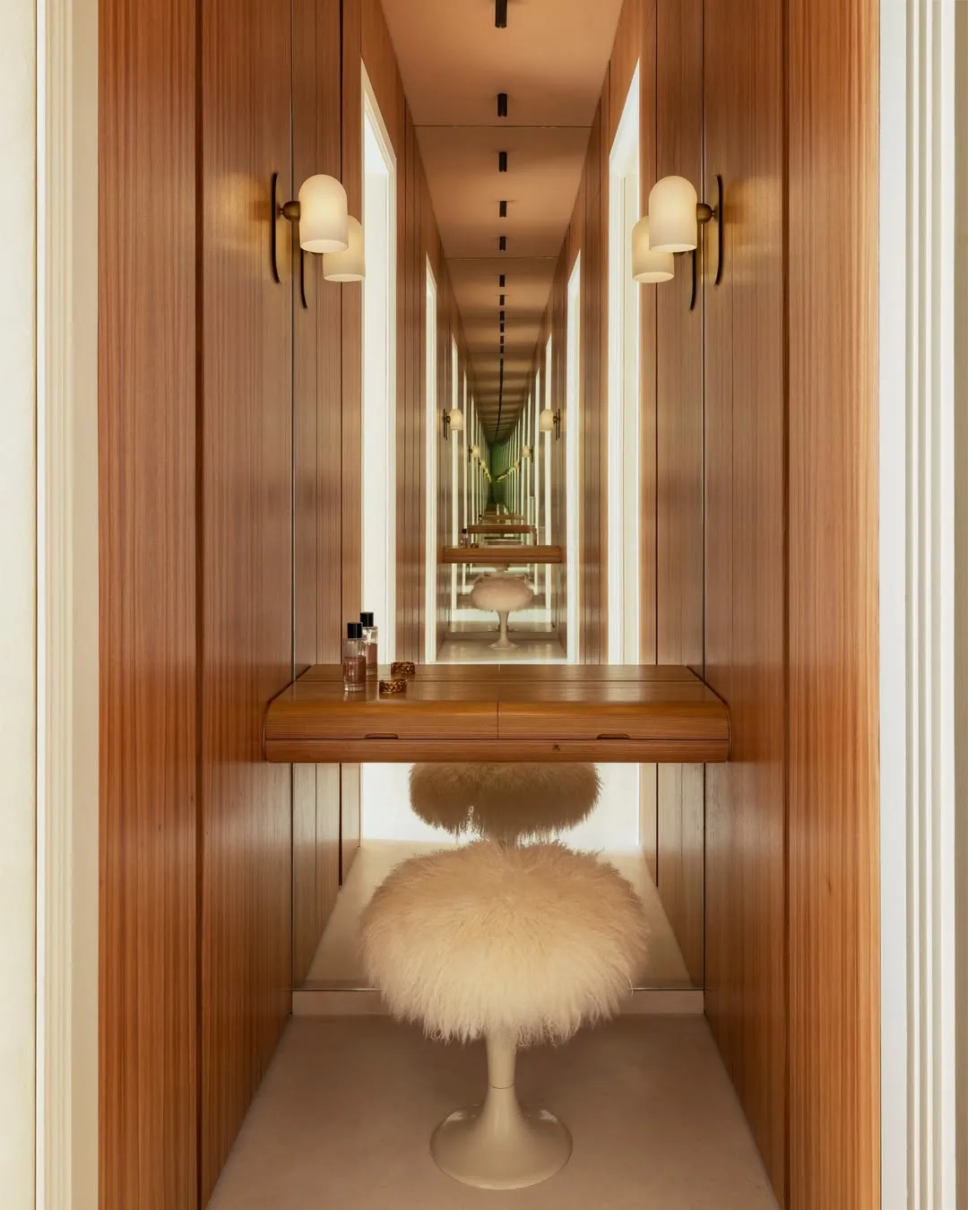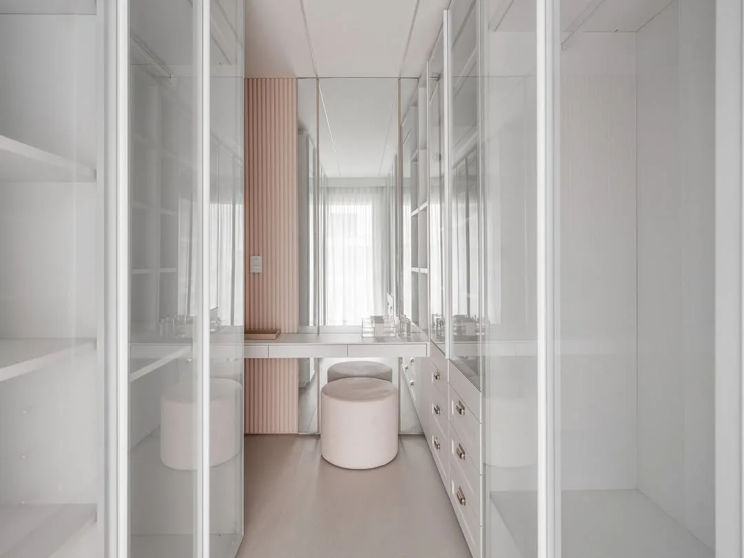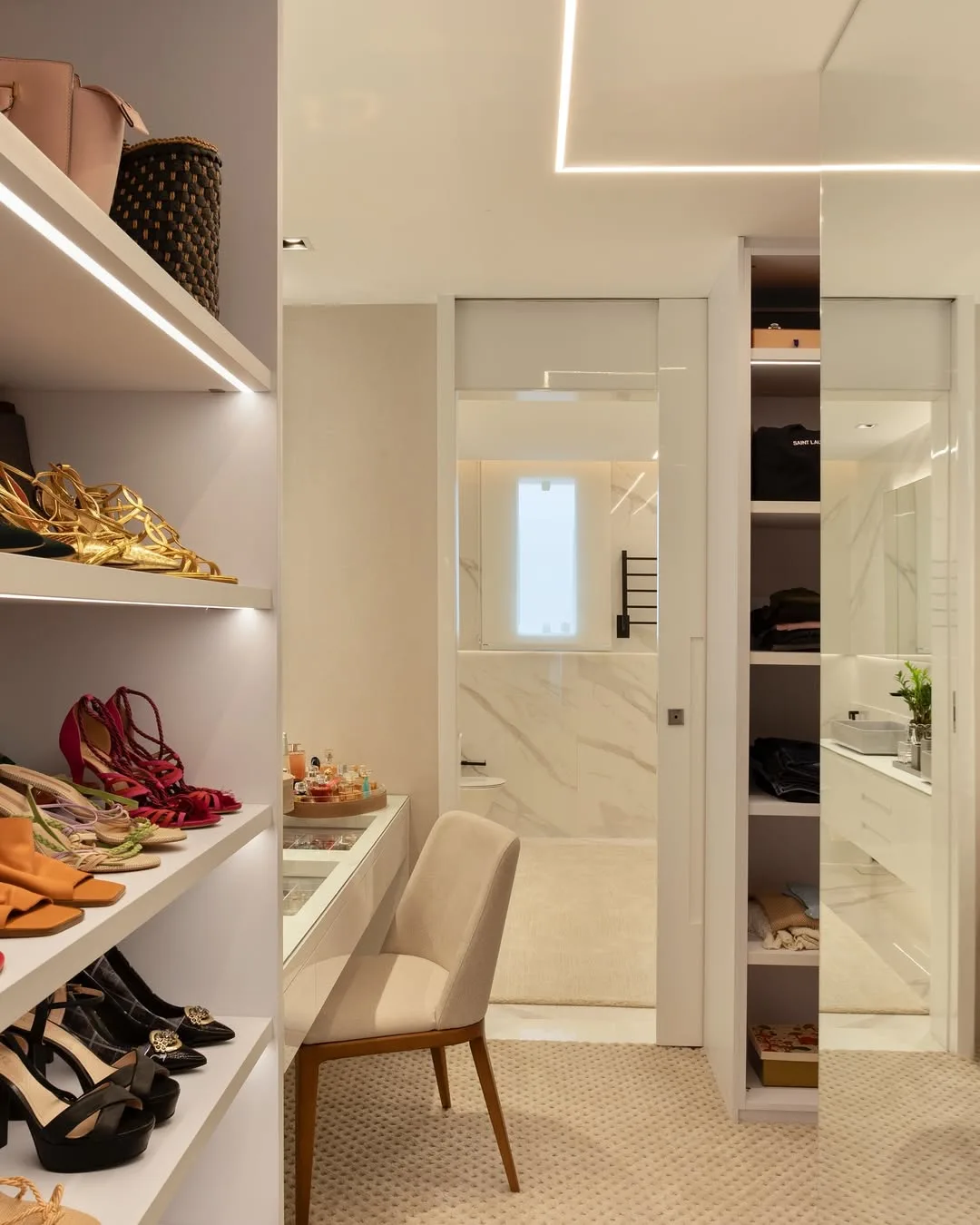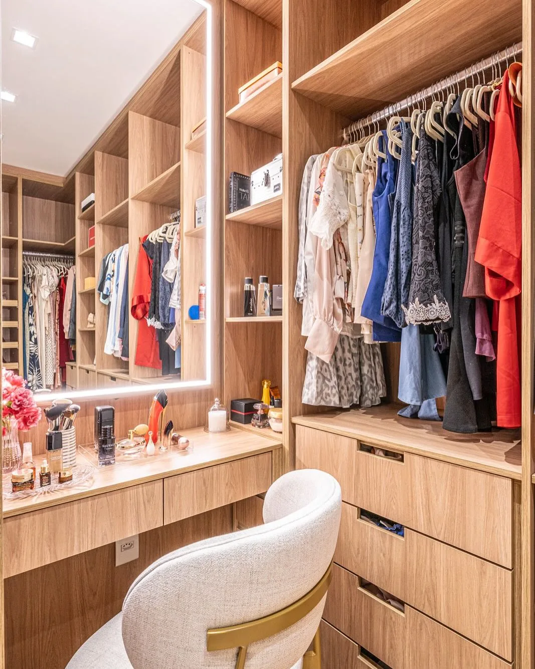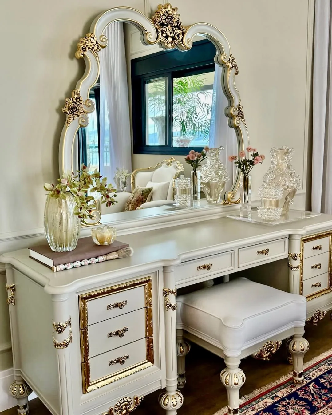 Penteadeira no closet com detalhes delicados e aparência elegante.