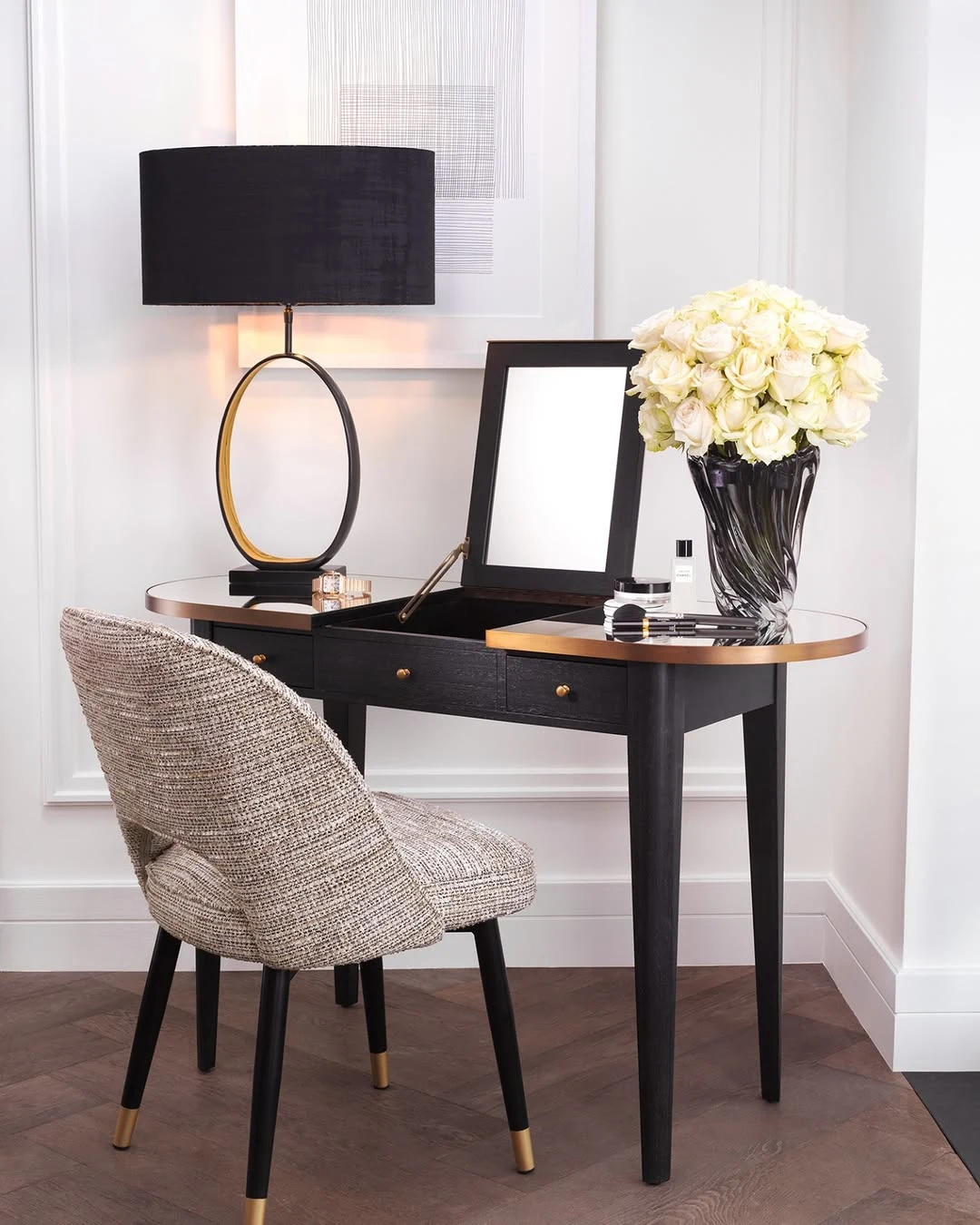 Mas, se você gosta de algo mais moderno, pode não ser a melhor opção. Contudo, se ainda assim deu vontade de ter uma peça mais rica em detalhes, existem algumas penteadeiras retrô mais discretas que podem fazer o mix perfeito entre o moderno e o tradicional. Nesse caso, é importante saber equilibrar os elementos para deixar tudo o mais integrado possível.