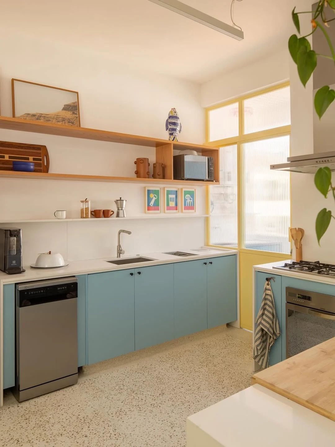 As prateleiras de madeira ficam lindas para deixar tudo organizado