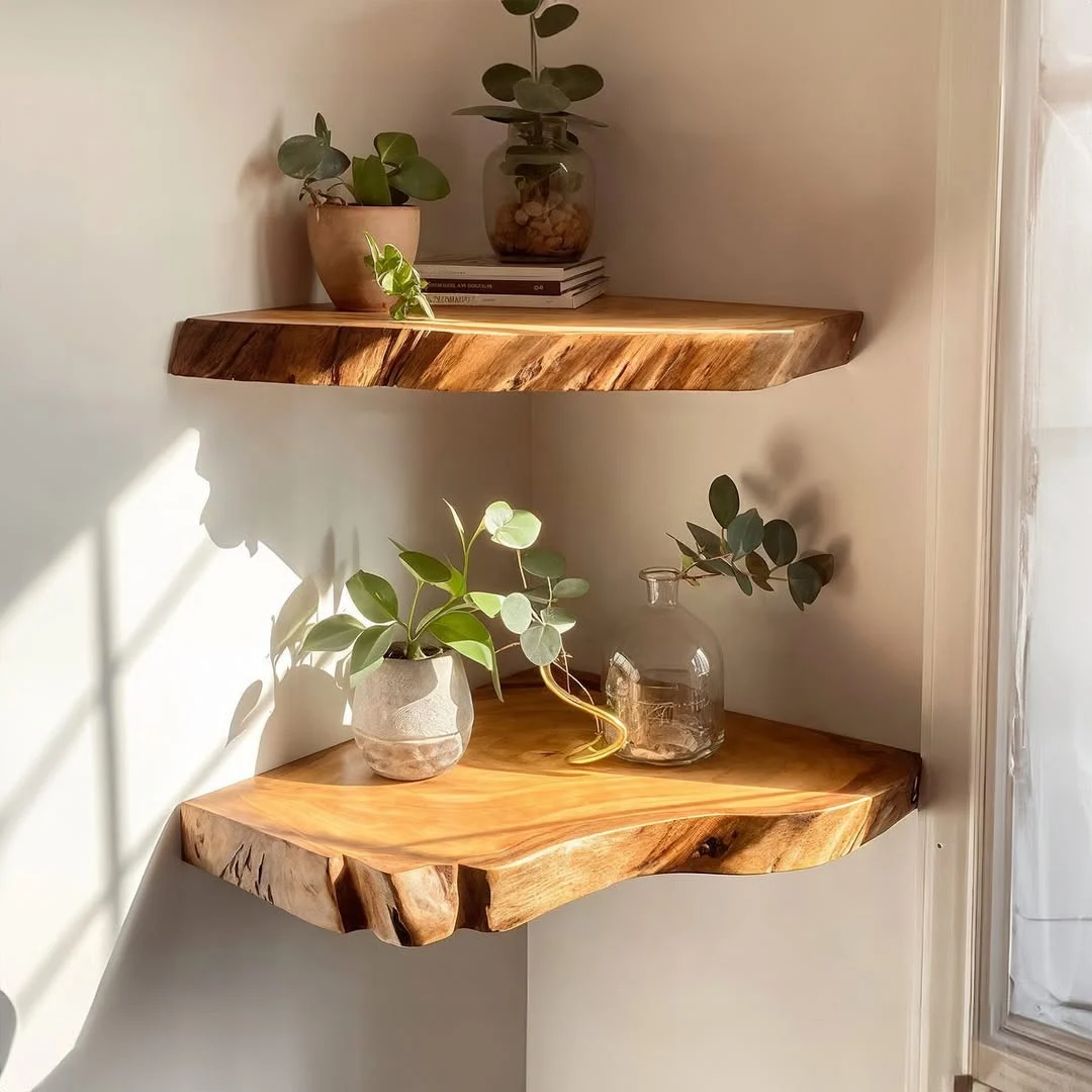 Prateleiras de madeira são bem fáceis de serem encontradas, tanto na internet quanto em espaços físicos. Na sua cidade, pode buscar por lojas de decoração e móveis que com certeza vai ter peças lindas.