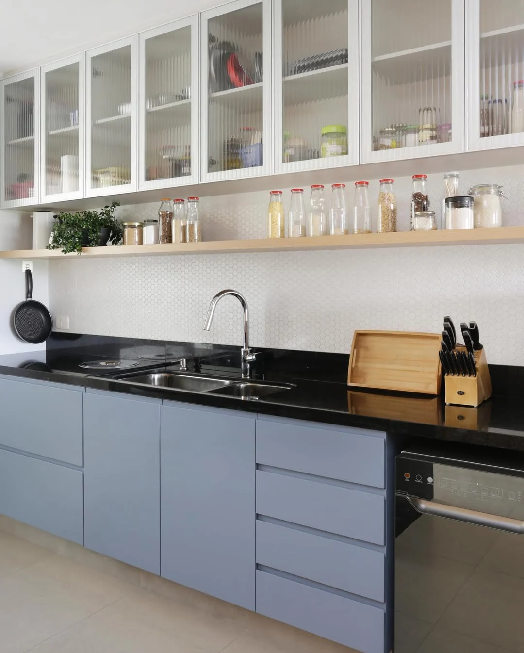 Por fim, o que não pode faltar é analisar o estilo. Como sempre, essa é uma parte fundamental, que deixa a cara realmente com cara de casa! Assim, pense no modelo que mais vai se adaptar ao restante dos cômodos. Se você tem um estilo mais industrial, por exemplo, vale apostar em uma prateleira de madeira com ferro preto.