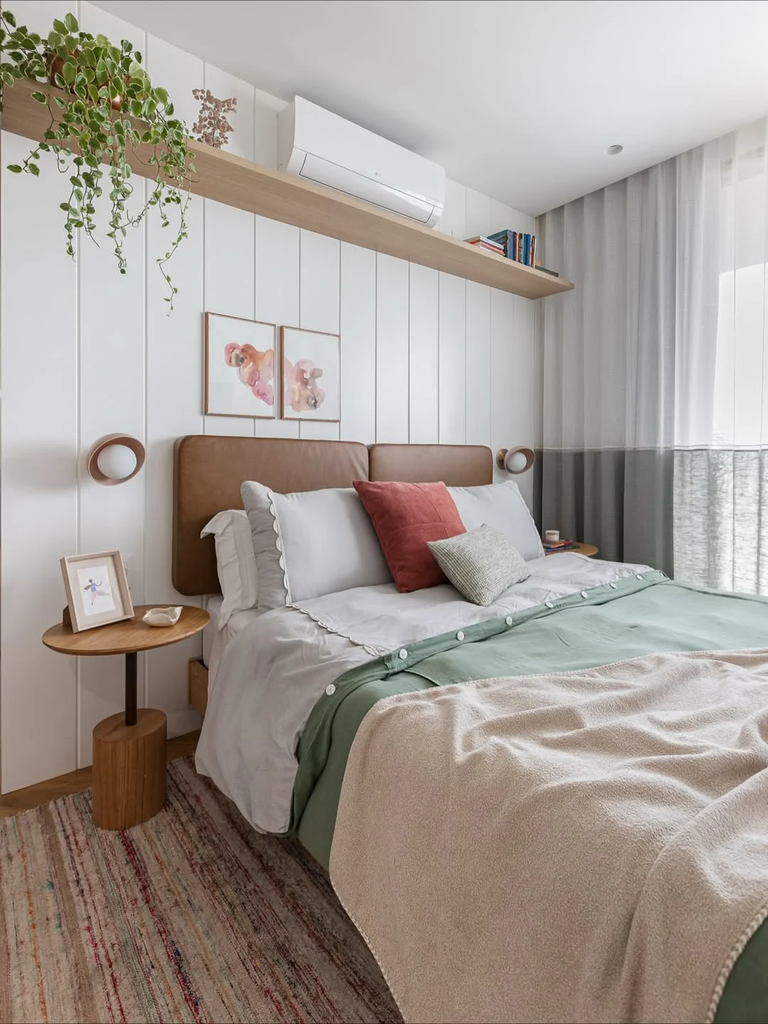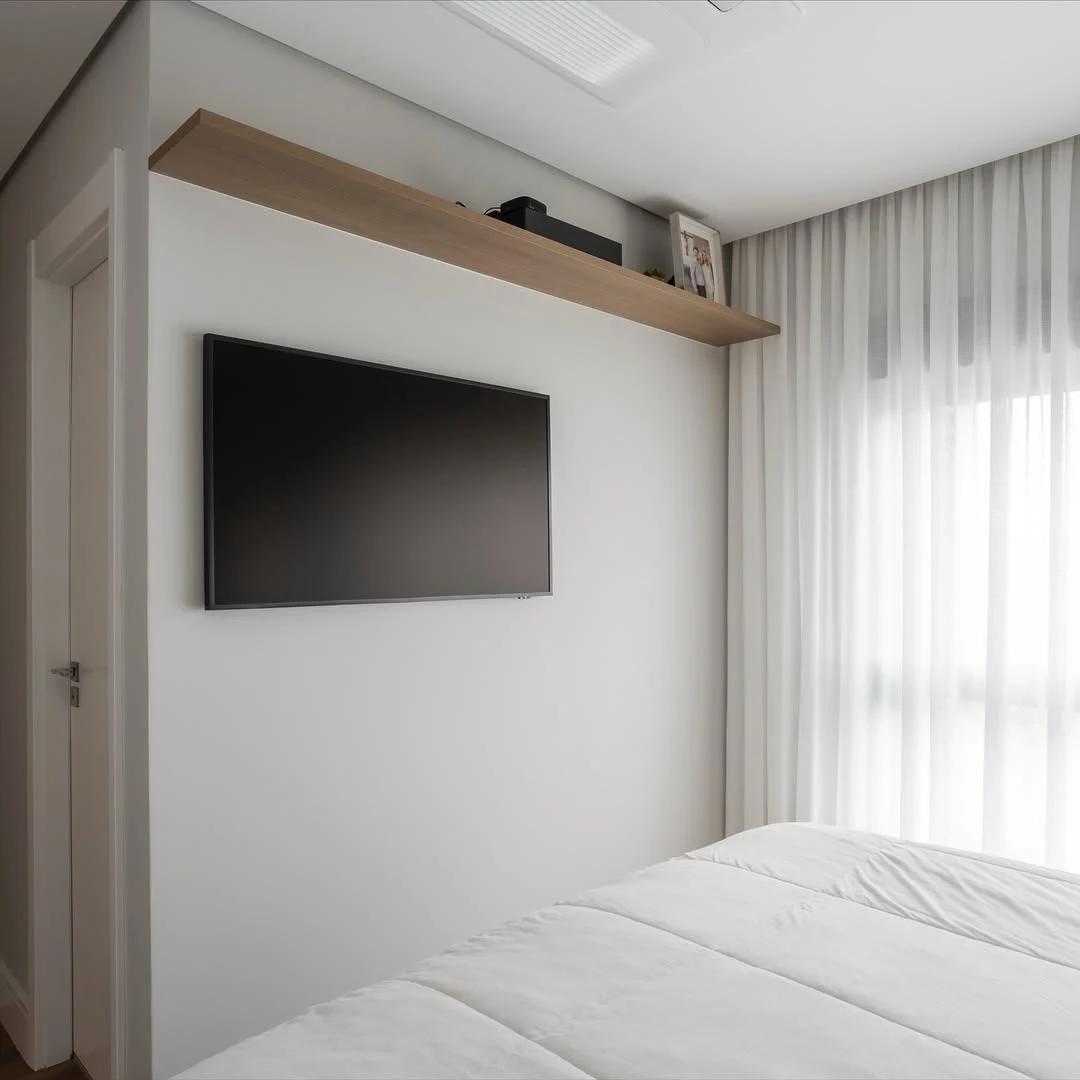 No quarto, é quase a mesma coisa da sala de estar. As prateleiras podem ser usadas para exibir alguns itens decorativos, livros e plantas. Dá até mesmo para deixar uma perto da sua penteadeira e expor algumas maquiagens para ficar mais fácil o acesso.