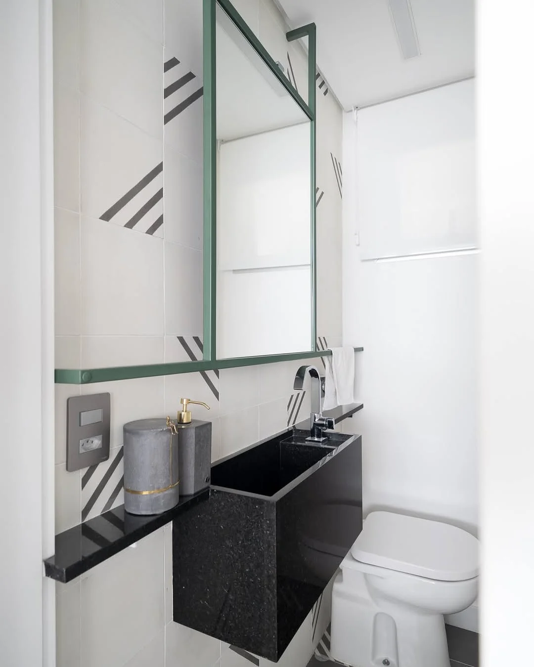 20. Na moldura do espelho e embaixo da pia: pura sofisticação!