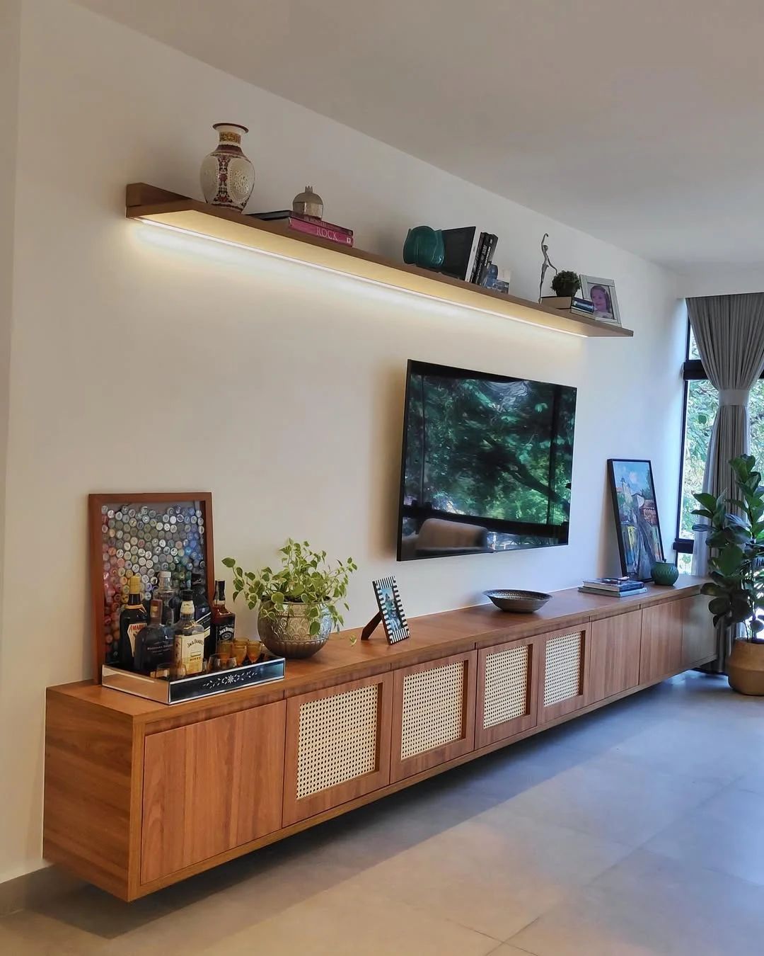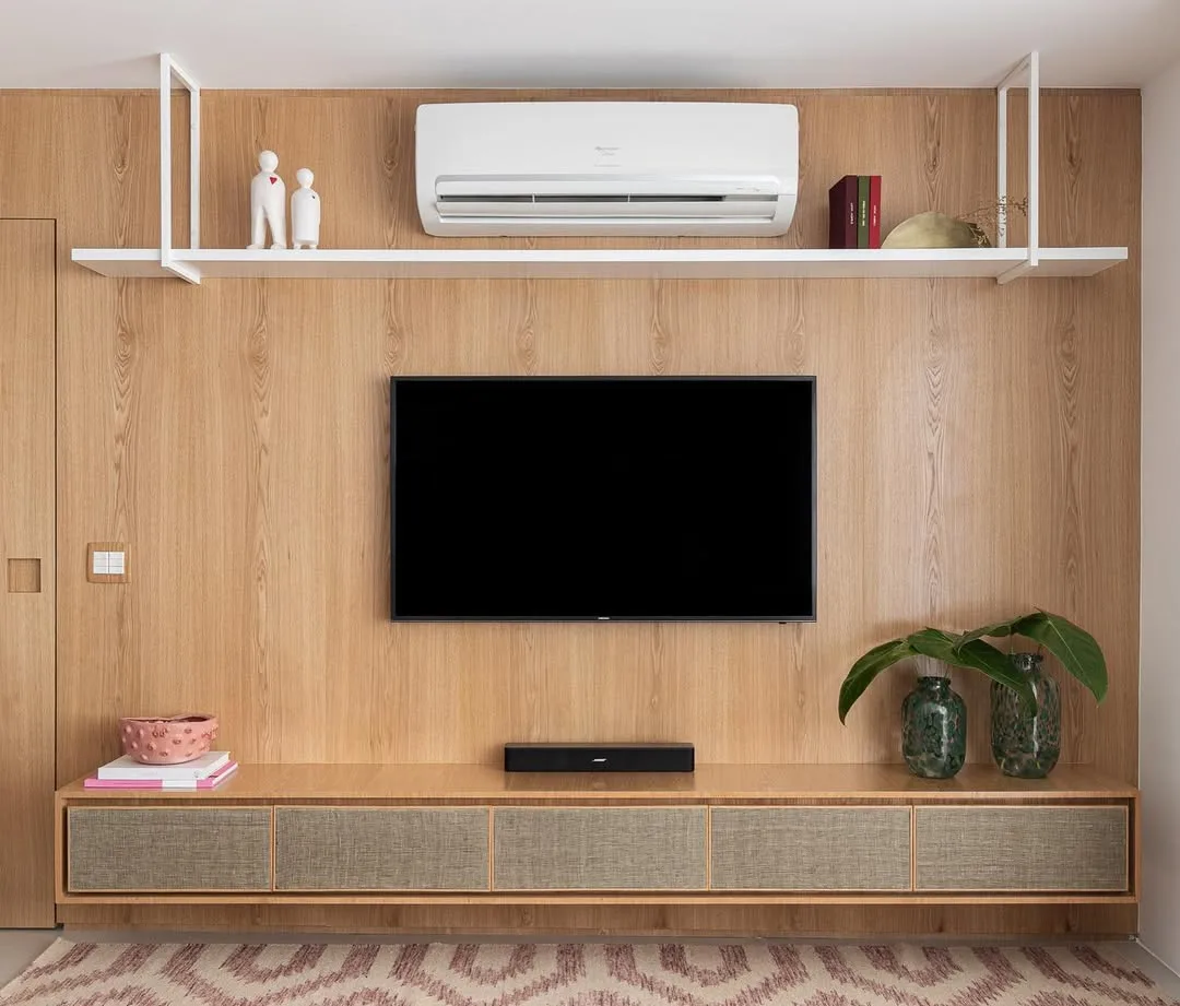 Manter a ventilação adequada atrás do móvel também é importante, especialmente se houver aparelhos eletrônicos que geram calor, como videogames e roteadores.
