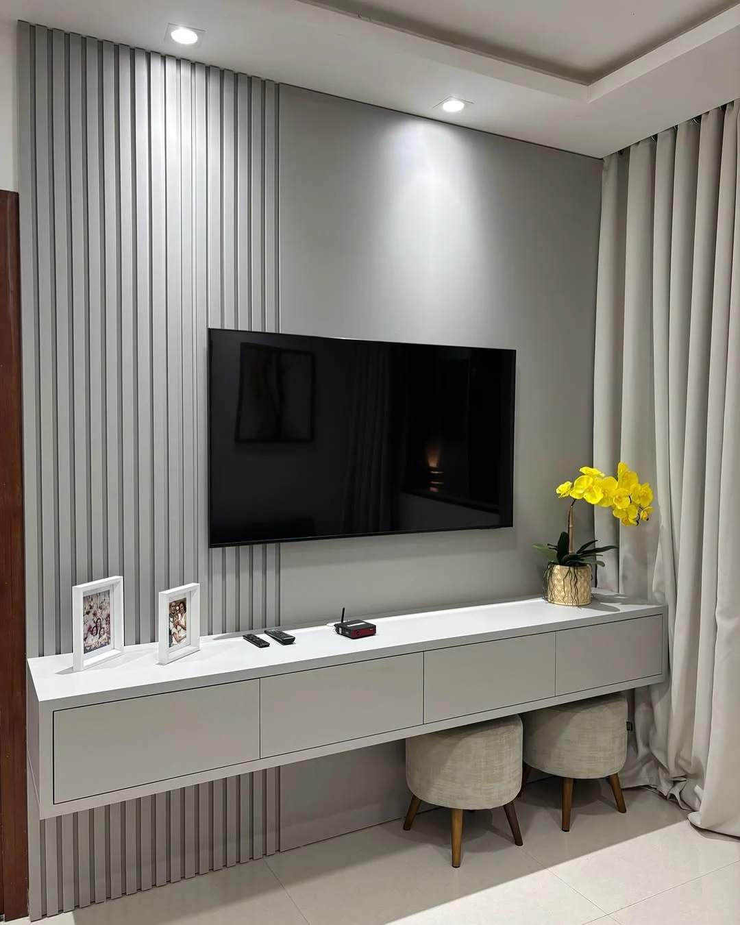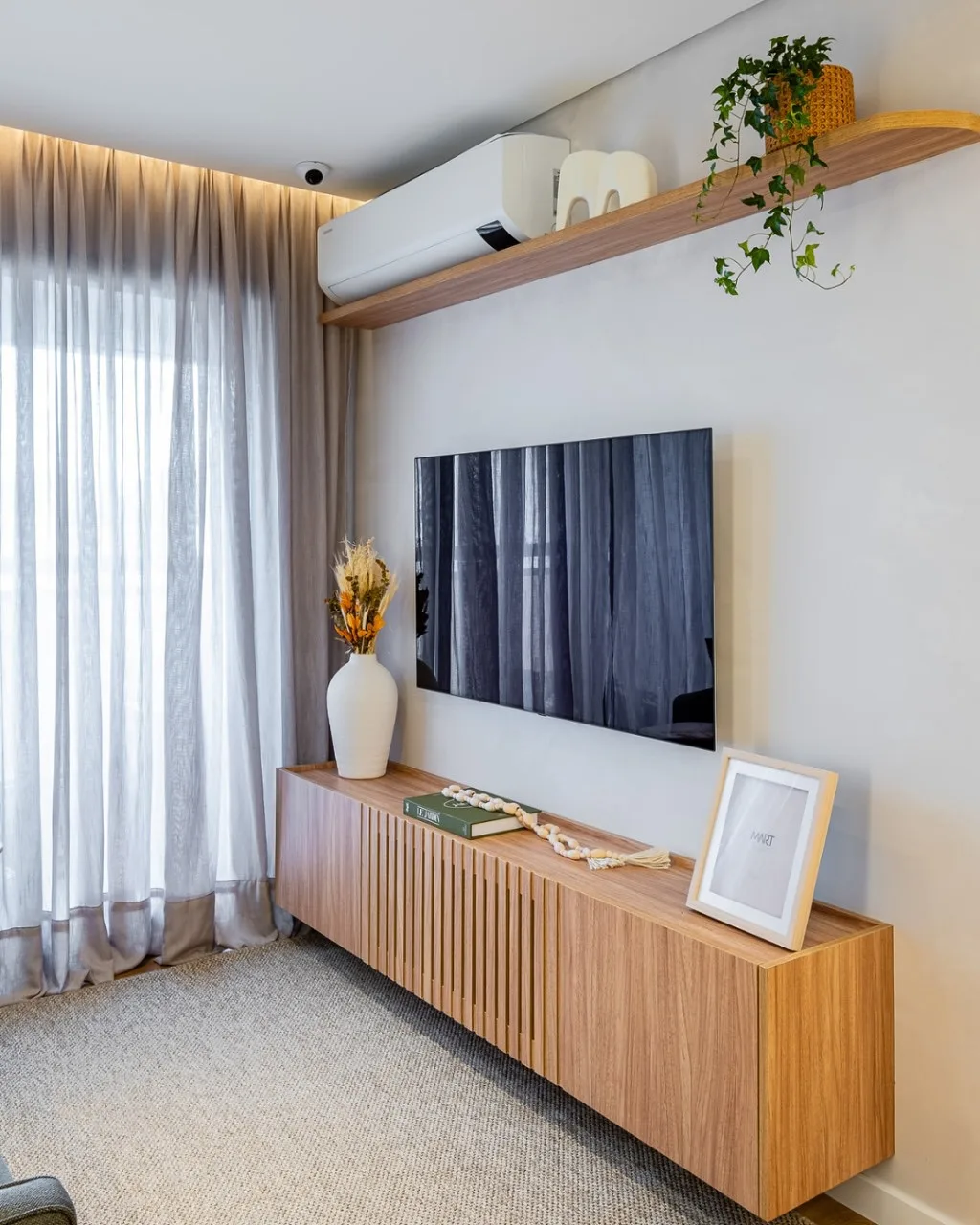 Para ambientes compactos, o rack suspenso é uma excelente escolha. Ele cria um visual bem moderno e leve, aproveitando ao máximo o espaço vertical de casa sem comprometer a circulação do ambiente. Por isso, hoje reuni algumas dicas bem legais para você escolher o seu modelo ideal!