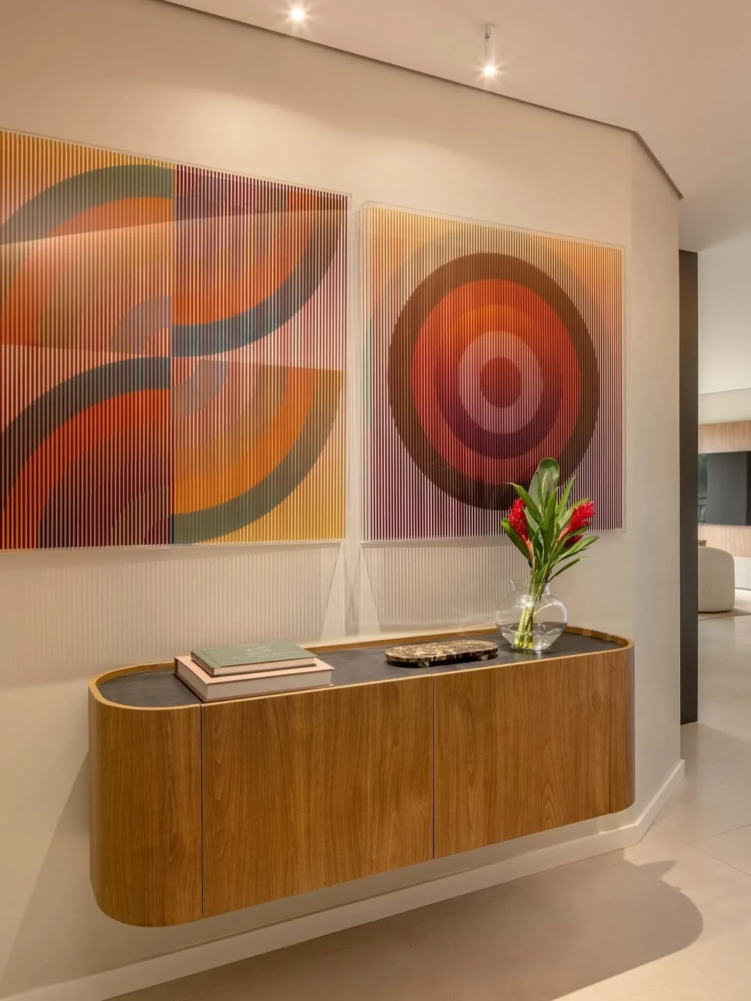 Um grande diferencial no estilo do rack suspenso é que você pode personalizar e usar como quiser. Seja no hall de entrada, na sala de estar ou no quarto, dá para escolher como ele vai servir melhor às suas necessidades. Você pode optar por nichos, portas ou gavetas. Além disso, também pode escolher incluir ou não uma iluminação embutida.