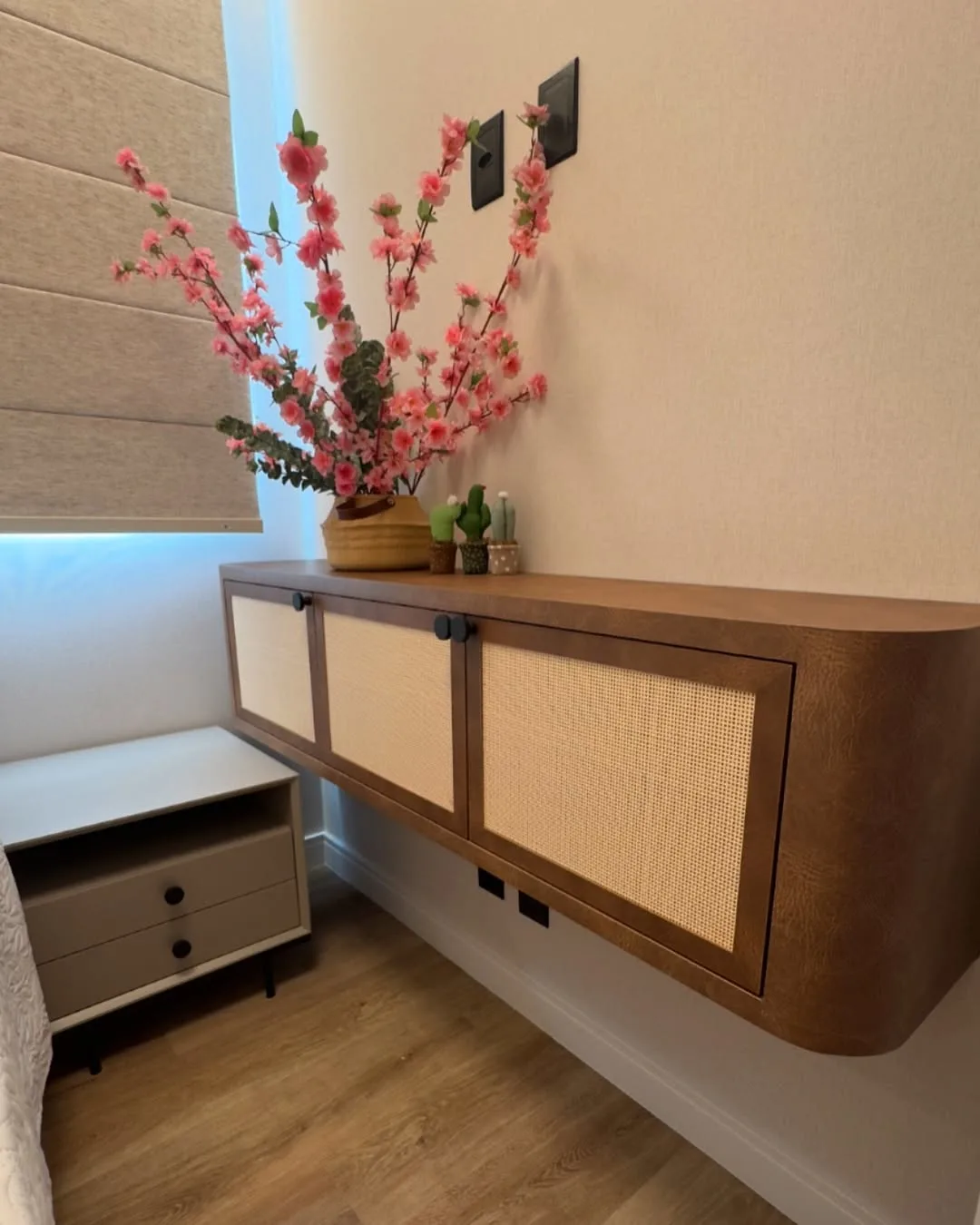 Outra característica desse tipo de peça é que ela confere bastante modernidade e leveza no cômodo. Por não estar presa ao chão, muitas vezes temos a sensação de que o ambiente fica mais limpo, com uma aparência mais contemporânea. Além disso, pensando em estilo, você pode até sentir que o seu cômodo fica mais organizado com a presença de um móvel flutuante.