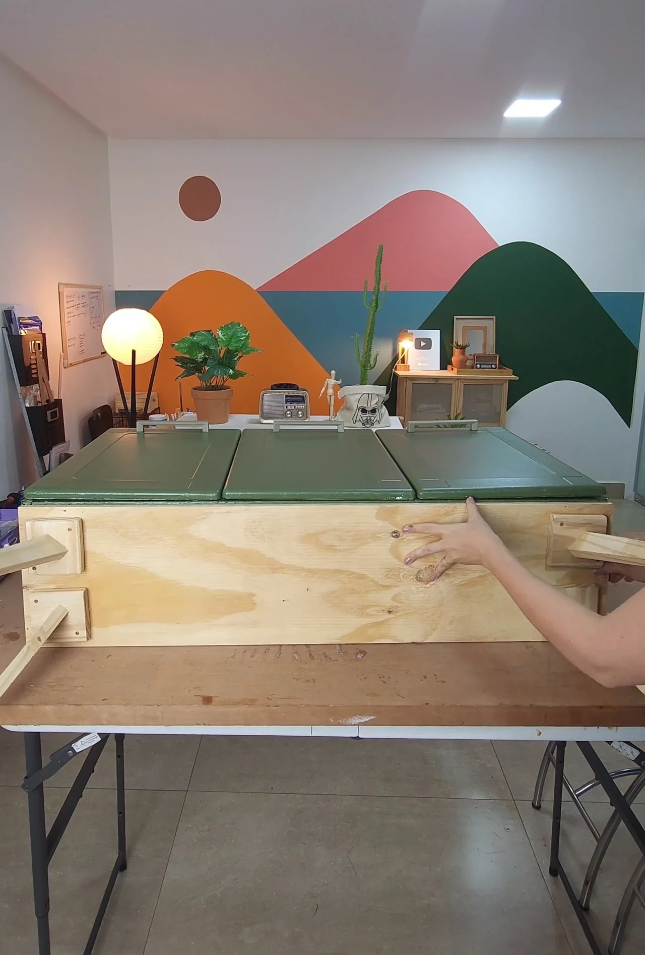Passo 5: hora de montar e juntar as peças!Finalização do aparador feito com armário de cozinha antigo, instalação da parte debaixo de madeira.